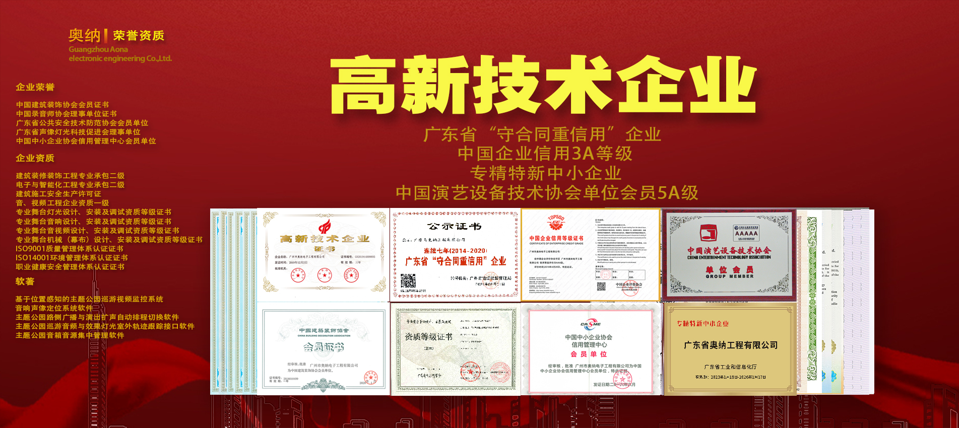 奧納工程深耕文化領(lǐng)域二十載,已成為行業(yè)最具影響力的一站式服務(wù)平臺(tái)。作為一家專注于“聲光像、智能化、聲學(xué)裝修、文化旅游”四大領(lǐng)域的高新技術(shù)企業(yè),奧納旨在為客戶提供從導(dǎo)演創(chuàng)編、顧問(wèn)咨詢、創(chuàng)意策劃、技術(shù)方案到定制研發(fā)、產(chǎn)品供應(yīng)、工程施工及售后維護(hù)的全過(guò)程服務(wù)。